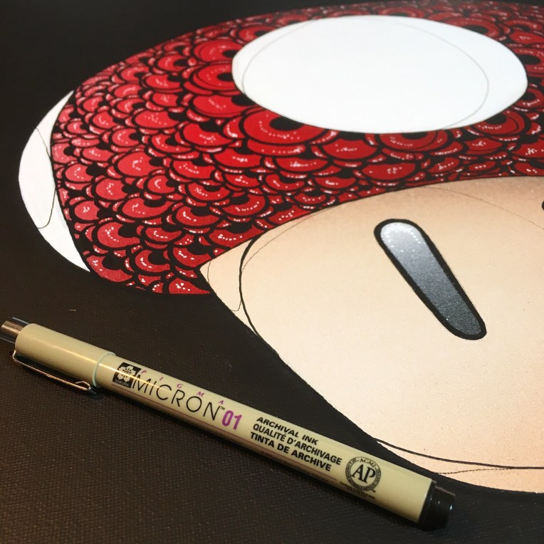 wip, commande spéciale en mode popart pour Julien!! Traits les plus fins réalisés avec les marqueurs Micron. Je pense qu’une série de toiles sur le même thème suivra 🙂 Quels personnages iconiques pourraient être flowerisés? 🌹 #
