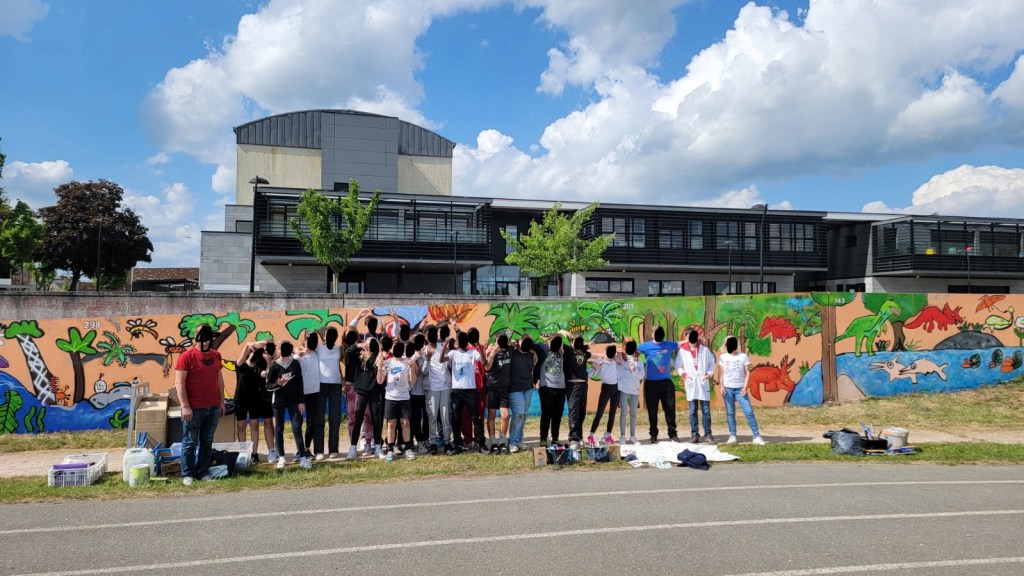 - Mai 2024 : encadrement de la réalisation de la fresque « les valeurs du sport » avec les élèves du collège la Loge des Bois de Senonches (61).