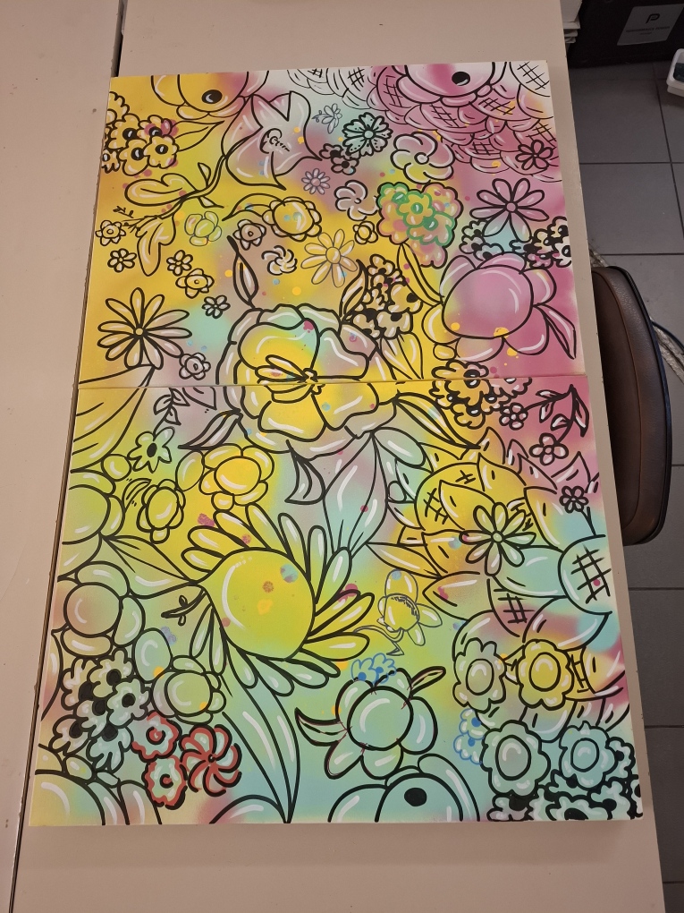 - Juin 2025 : création d’une fresque et de toiles collectives avec les patients au centre de jour Colbert, psychiatrie pôle Paris 12 de l’Hôpital (75).