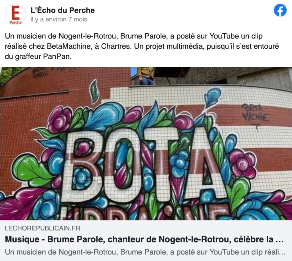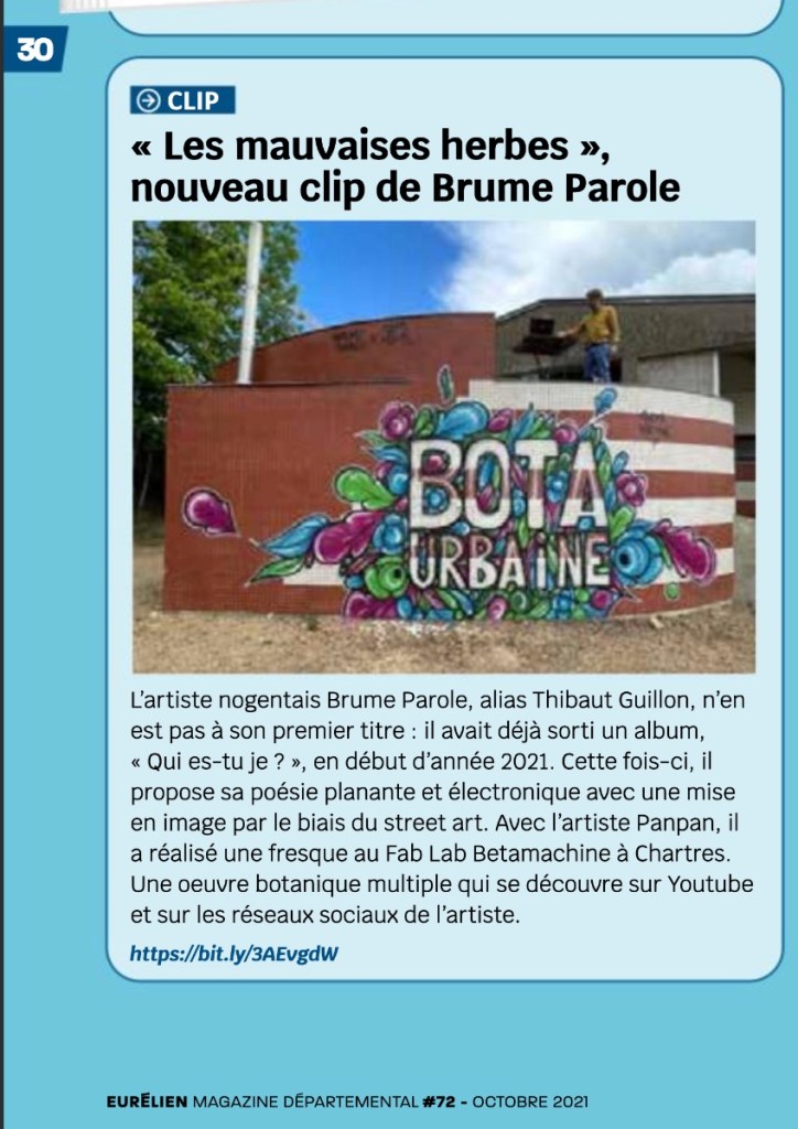 14/06/2021 Echo Républicain : Brume Parole, chanteur de Nogent-le-Rotrou, célèbre la botanique urbaine avec son clip
