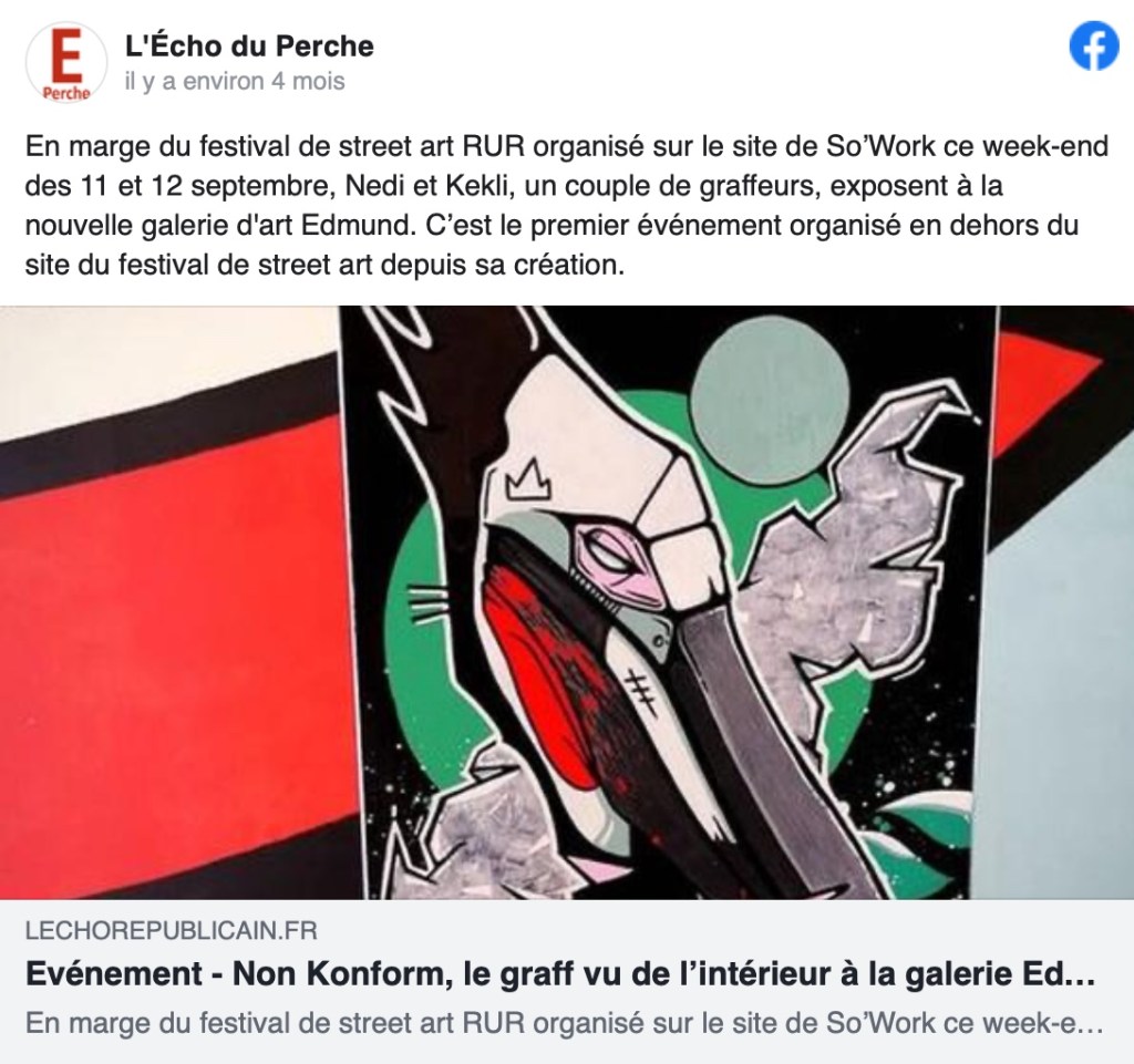 10/09/2021 Echo Républicain : Non Konform, le graff vu de l’intérieur à la galerie d’art Edmund à Nogent-le-Rotrou