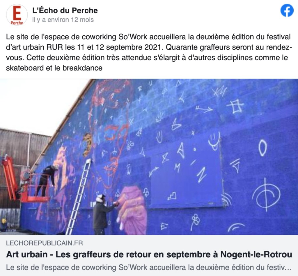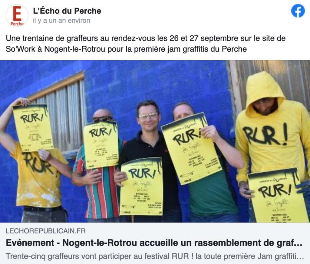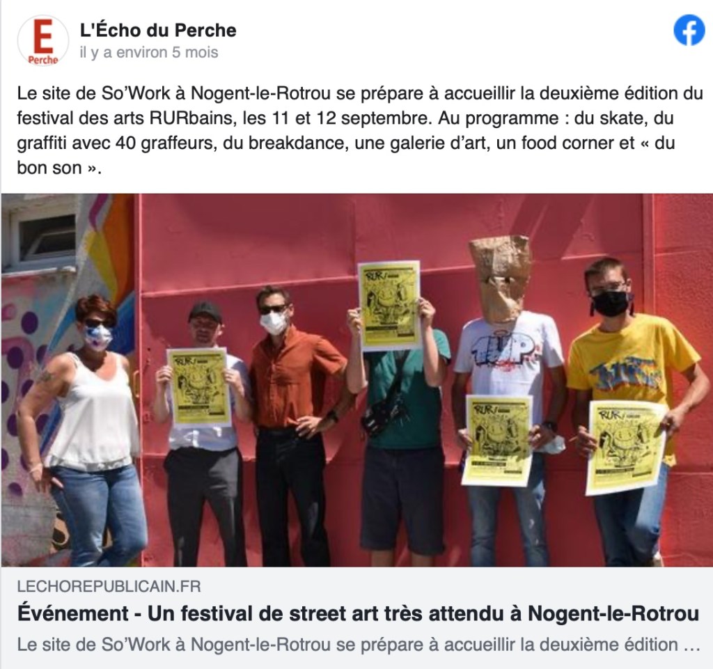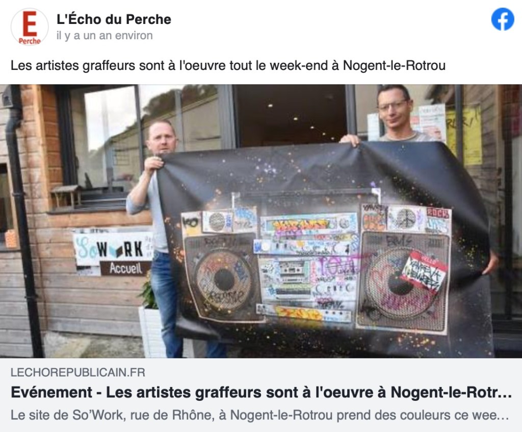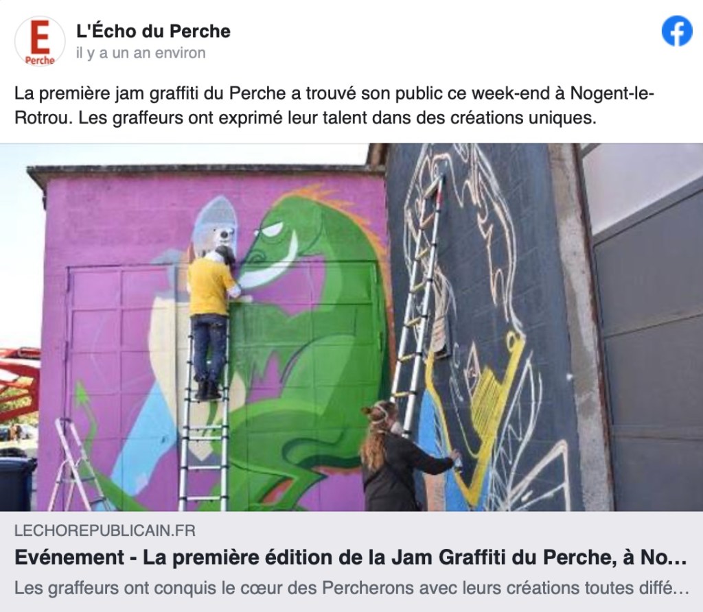 28/09/2020 Echo Républicain : La première édition de la Jam Graffiti du Perche, à Nogent-le-Rotrou, a trouvé son public