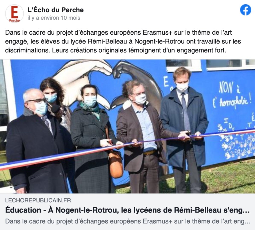 22/03/2021 Echo Républicain : À Nogent-le-Rotrou, les lycéens de Rémi-Belleau s’engagent contre les discriminations