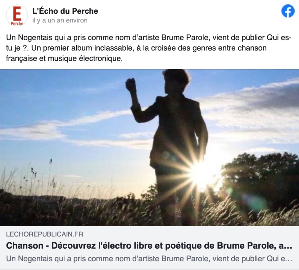 26/10/2020 Echo Républicain : Découvrez l’électro libre et poétique de Brume Parole, artiste de Nogent-le-Rotrou