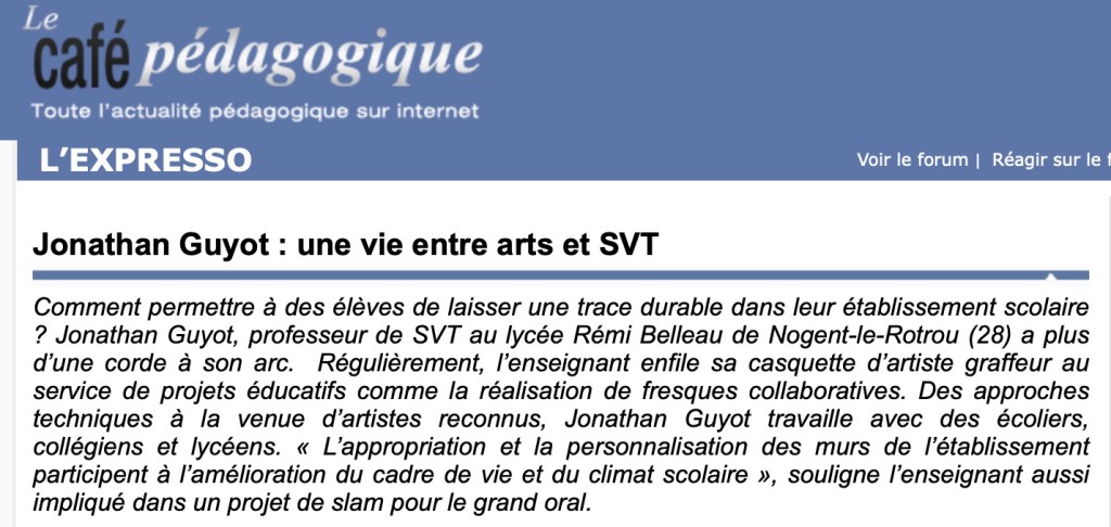 Janvier 2022 Le Café Pédagogique : Jonathan Guyot : une vie entre arts et SVT