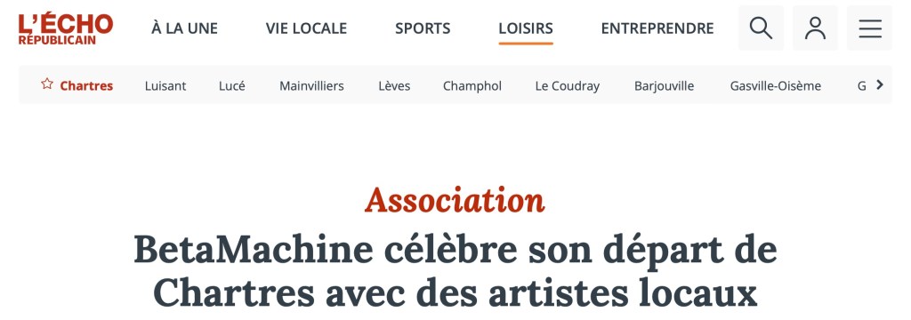 Avril 2022 Echo Républicain : BetaMachine célèbre son départ de Chartres avec des artistes locaux