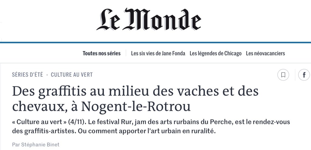 Aout 2022 Le Monde : Des graffitis au milieu des vaches et des chevaux, à Nogent-le-Rotrou