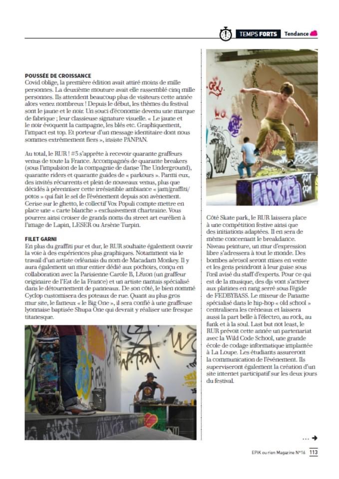 09/10/2021 Urban Arts Magazine : RUR pour l’amour du graff