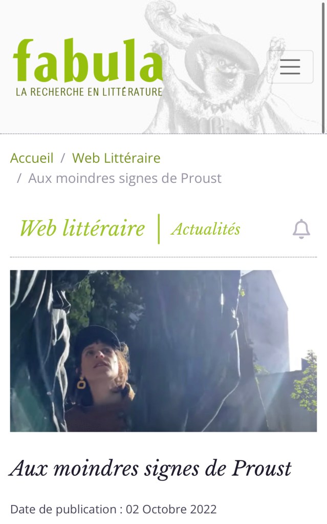 Octobre 2022, Fabula : Aux moindres signes de Proust
