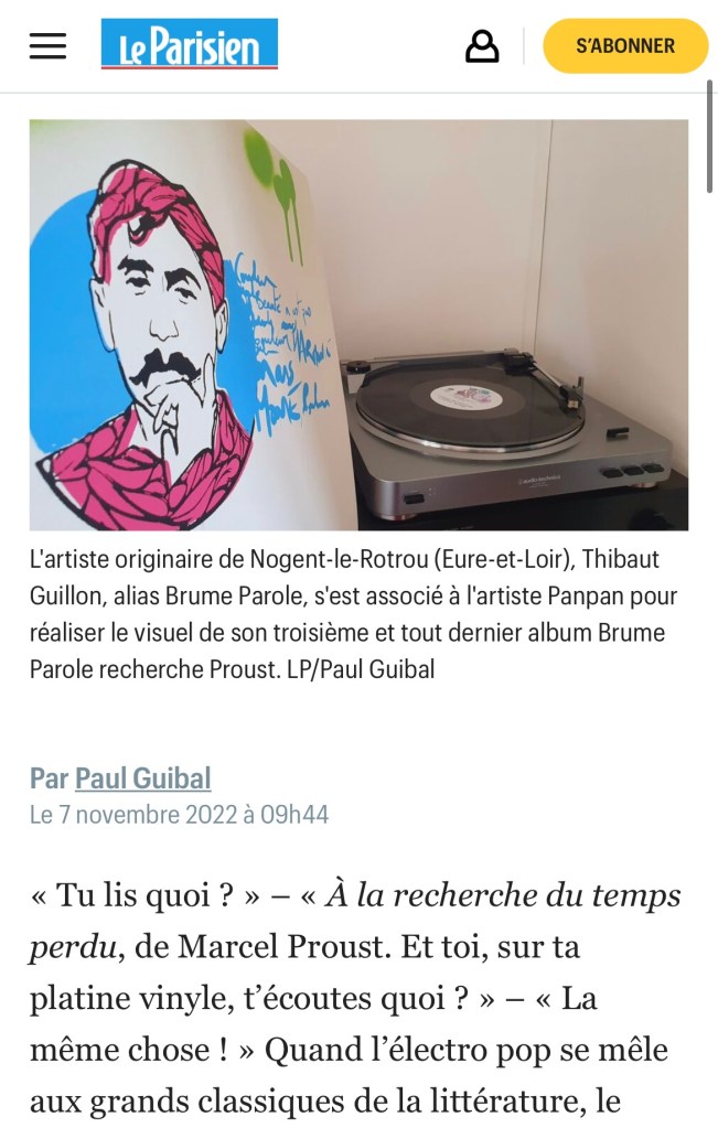 Novembre 2022, le Parisien : Brume Parole chante les mots de Marcel Proust dans un vinyle électro pop