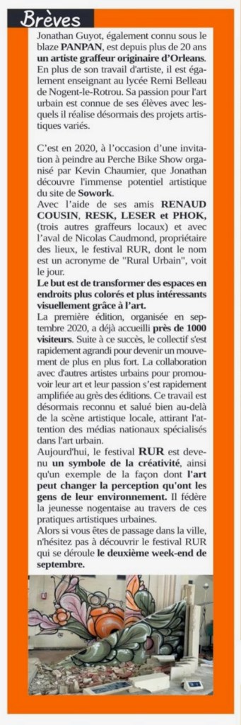 Septembre 2023, Echo Républicain, A Nogent-le-Rotrou, trois artistes et un entrepreneur à l’origine du festival d’arts urbains Rur