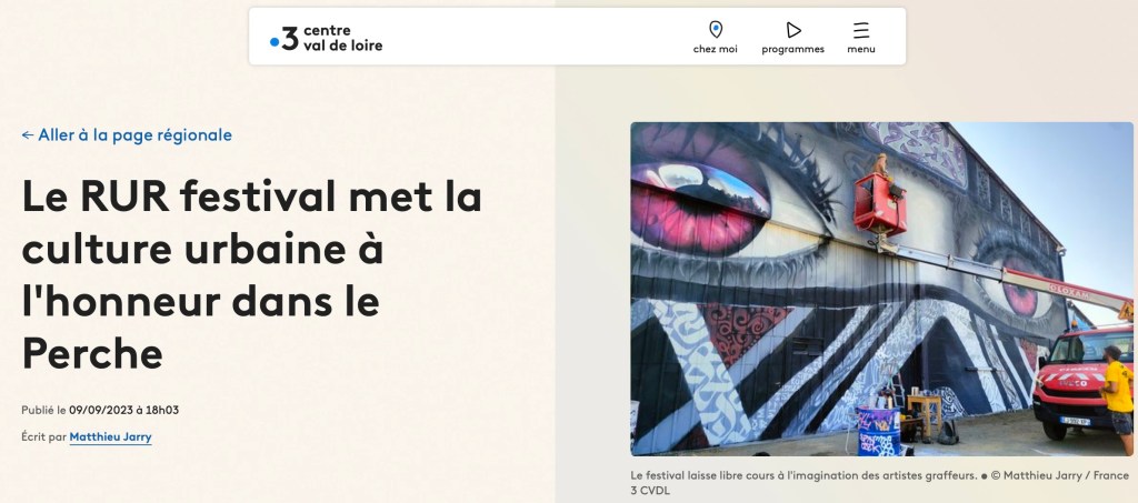 Septembre 2023, France 3, Le RUR festival met la culture urbaine à l’honneur dans le Perche