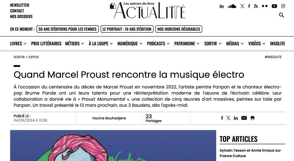 Mars 2024, Actualitté : Quand Marcel Proust rencontre la musique électro
