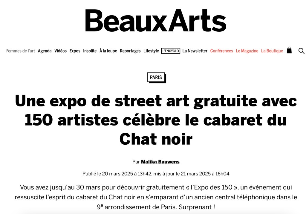 Mars 2025, Beaux-Arts Magazine : Une expo de street art gratuite avec 150 artistes célèbre le cabaret du Chat noir