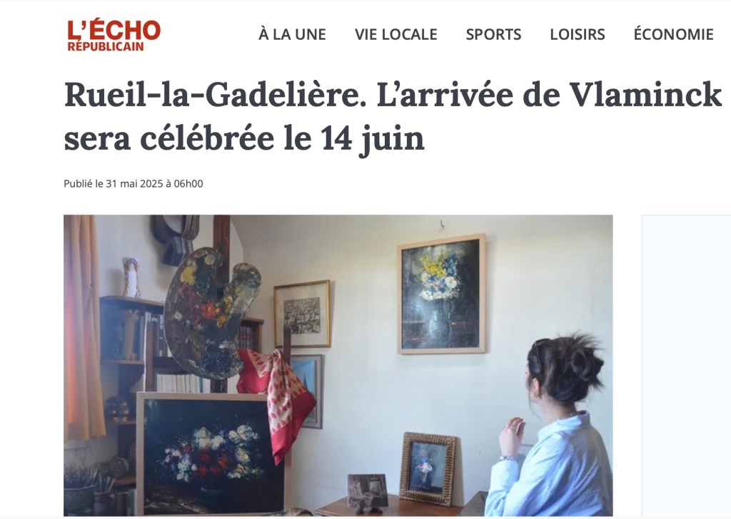 Juin 2025, Echo Républicain : Rueil-la-Gadelière. L’arrivée de Vlaminck sera célébrée le 14 juin
