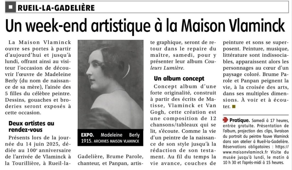 Novembre 2025, L’Echo Républicain, Un week end artistique à la Maison Vlaminck.